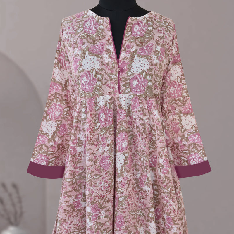 DEVIKA Block Print Pure Cotton Women Long Flared Dress