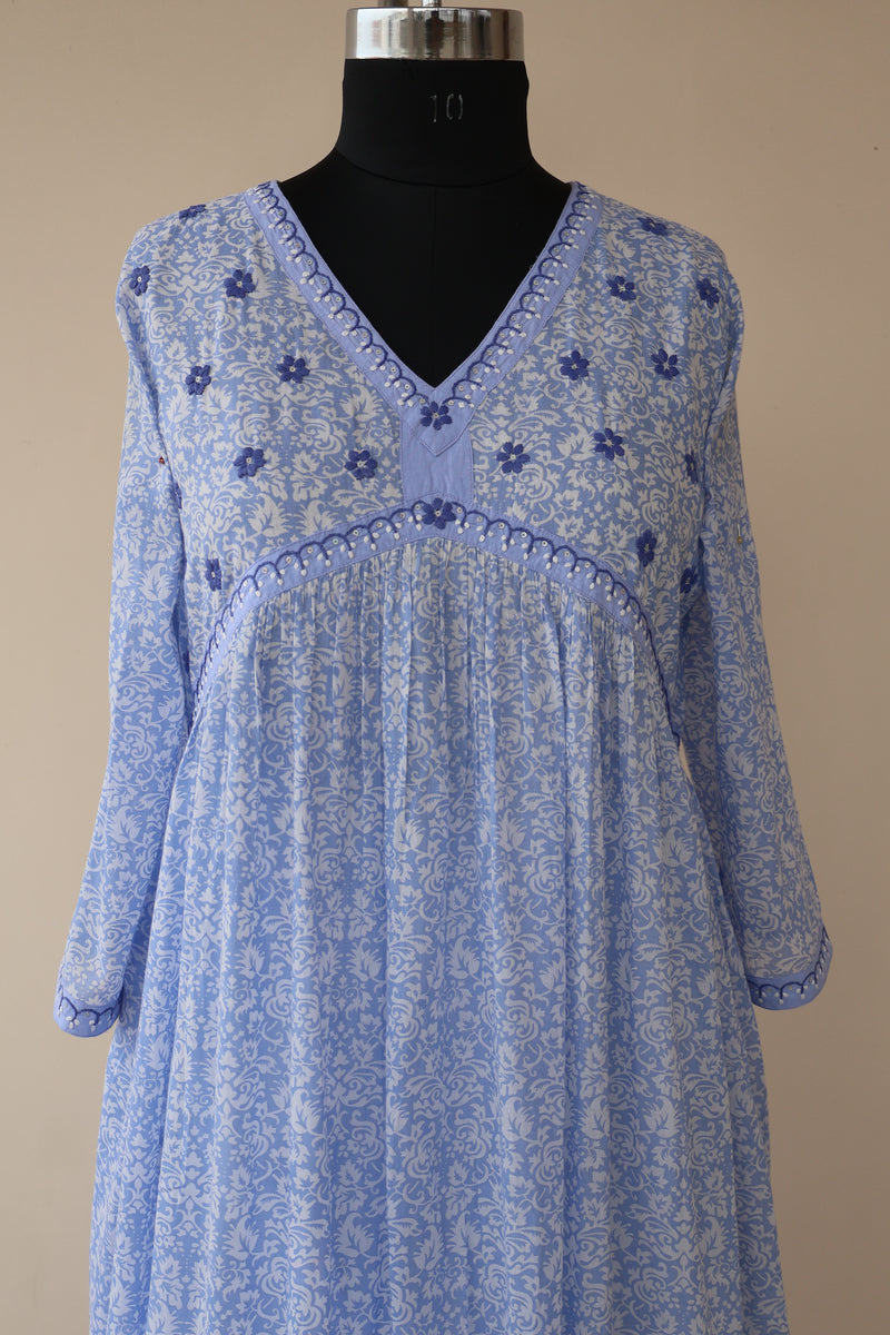 IKANA Georgette Embroidered Long Tunic Kurta Dress; Made to Order/Customizable