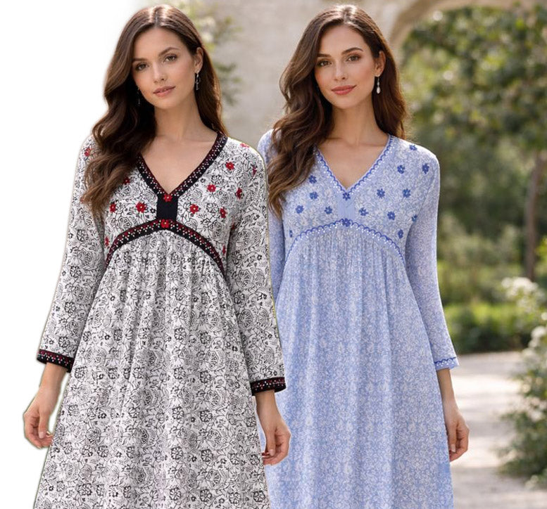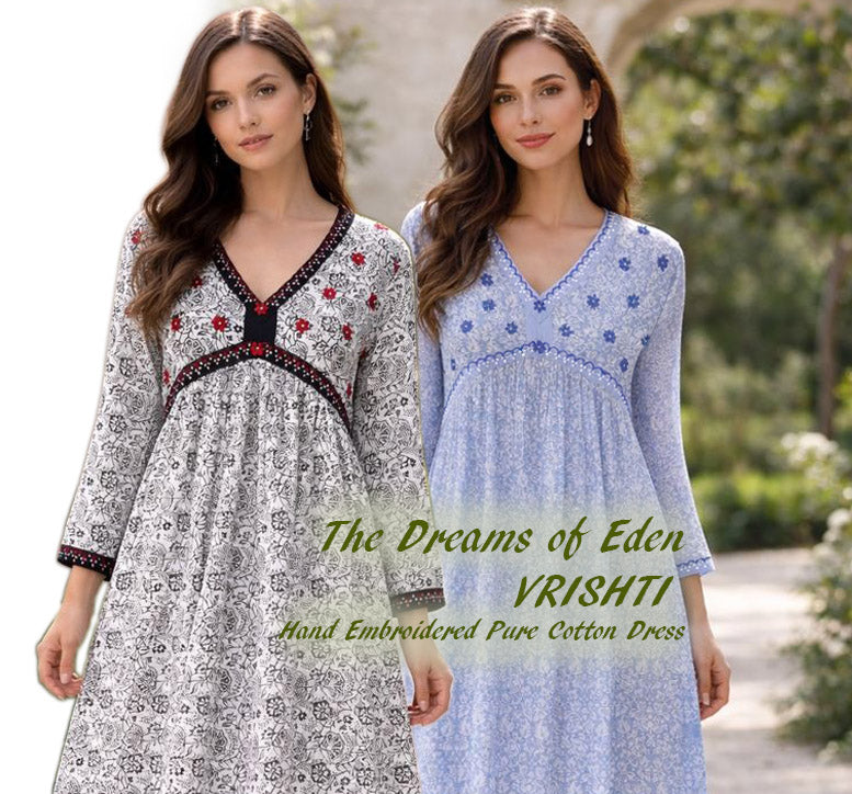 BODHI Hand Embroidered Pure Cotton Long Dress