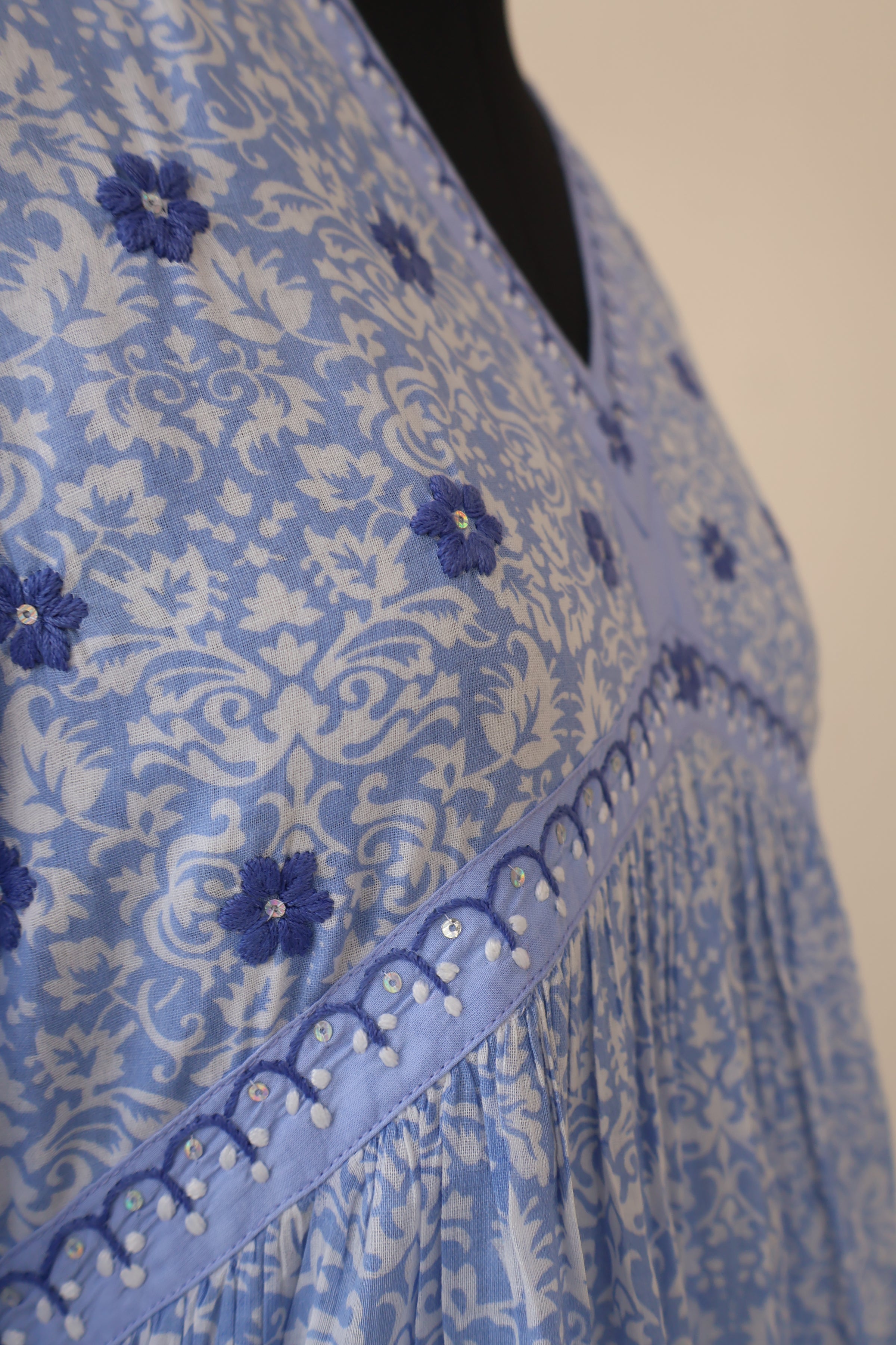 - Hand Embroidered with silk-cotton thread and sequins