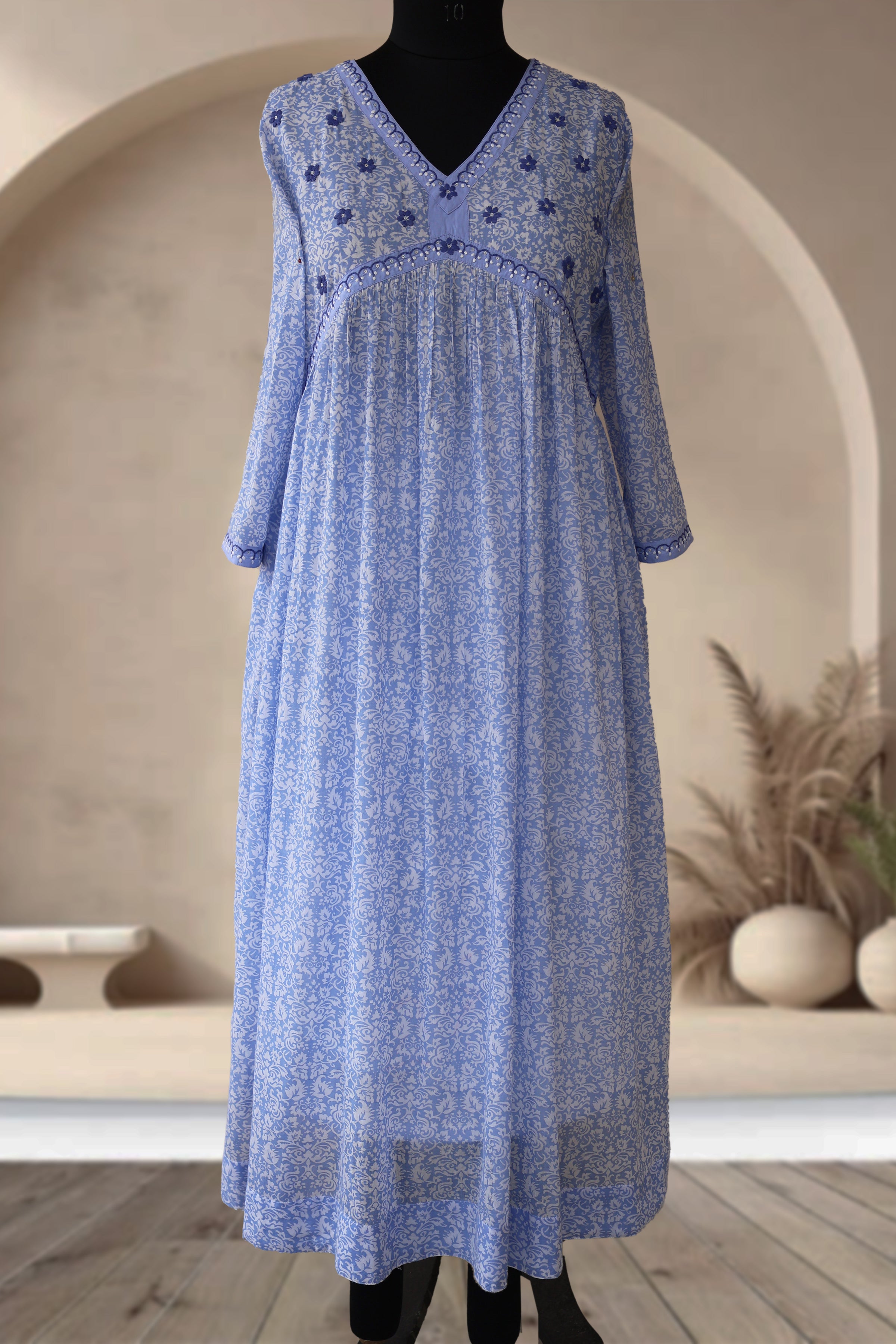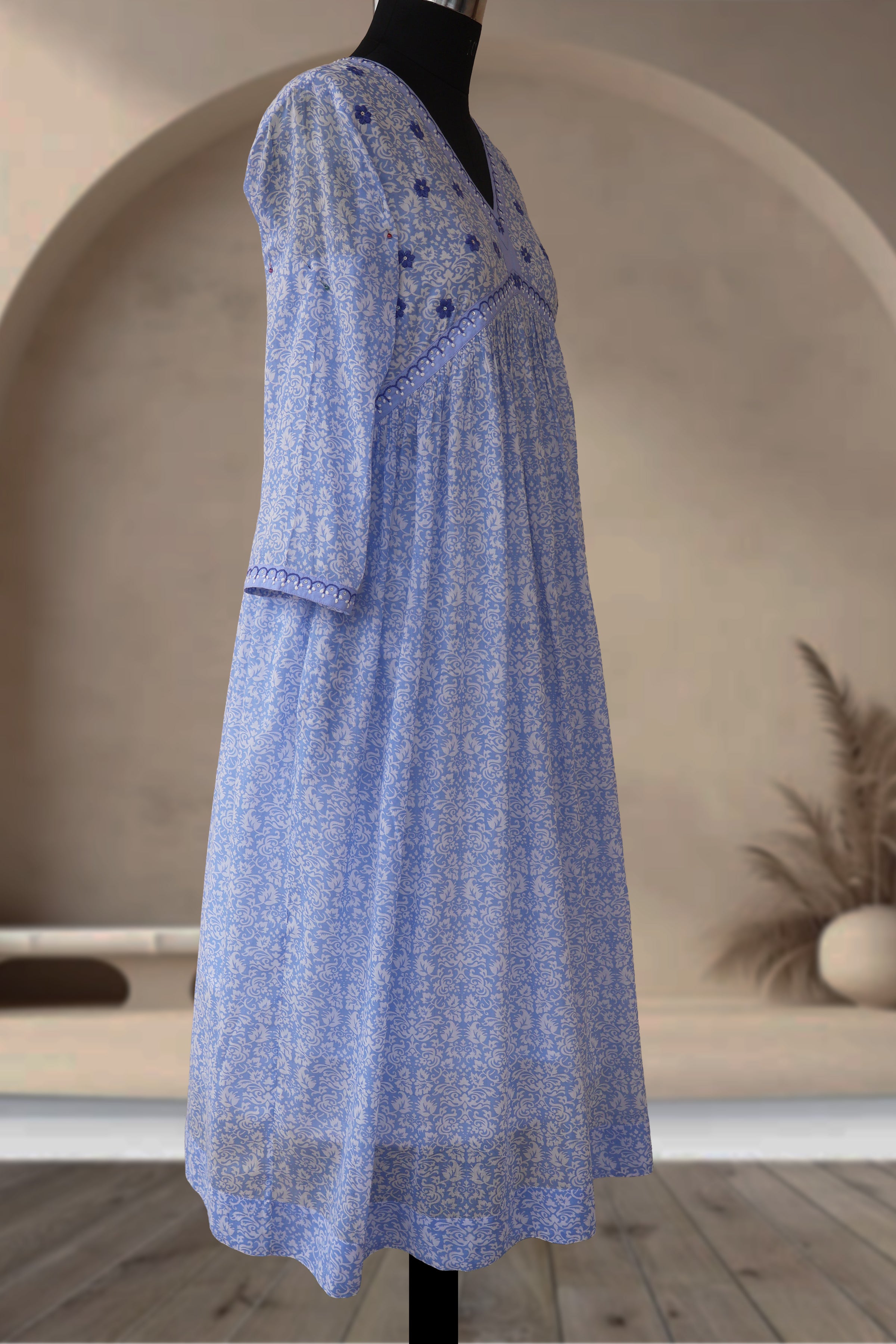 - Design: Soft floral prints inspired by nature and traditional motifs.