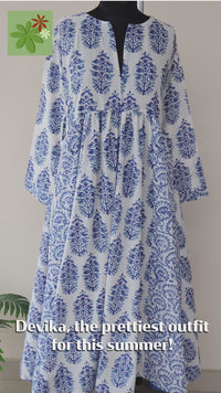 The Very beautiful Block Print Pure Cotton Long Flared Dress.