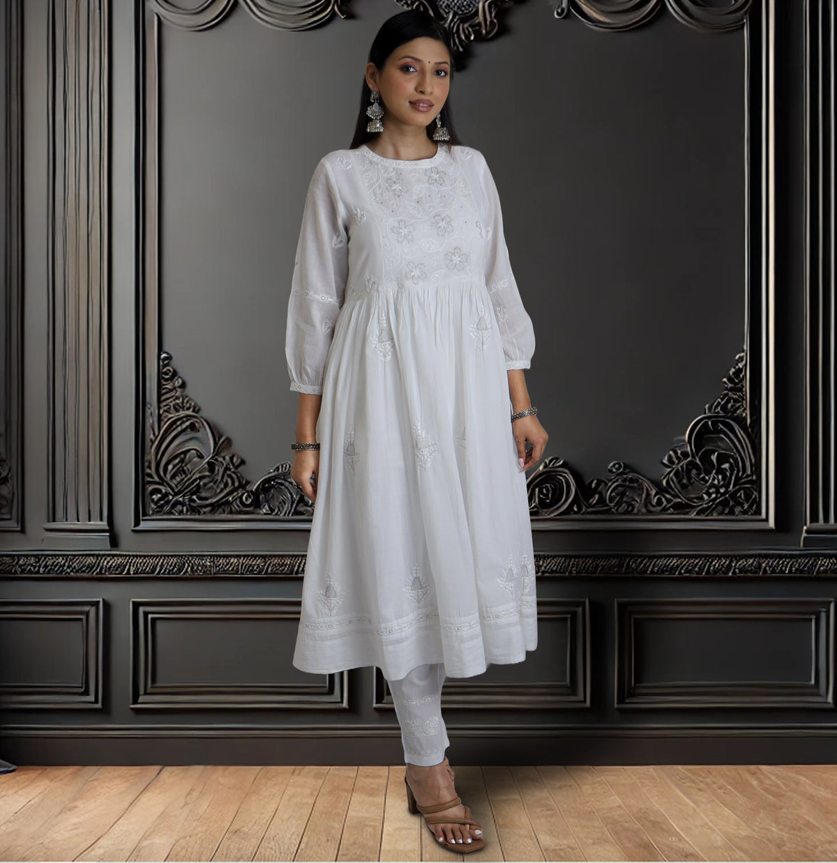 BHAVYA Cotton Hand Embroidered Long Dress, Kurta