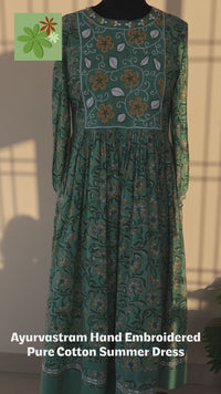 BHAVIKA Cotton Block Print Hand Embroidered Long Dress, Kurta: Made to Order/Customizable