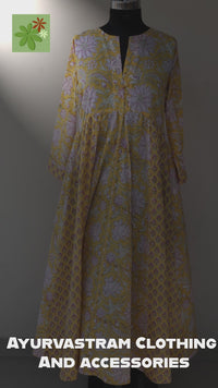 The Very beautiful Block Print Pure Cotton Long Flared Dress.